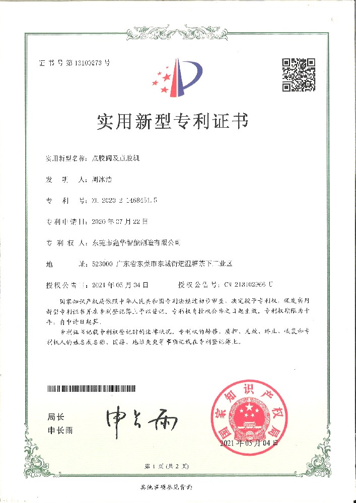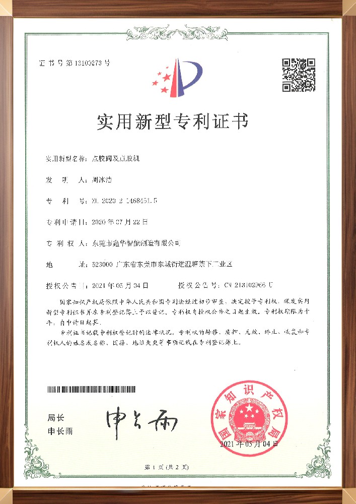 點膠閥機點膠機裝置證書
