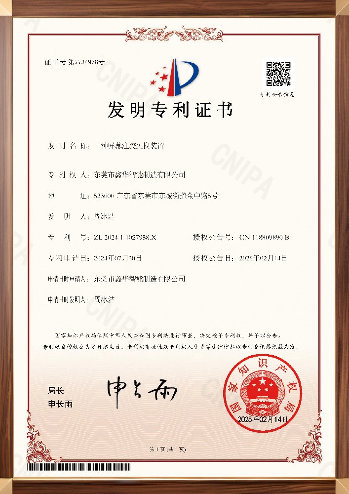 灌膠機專利證書