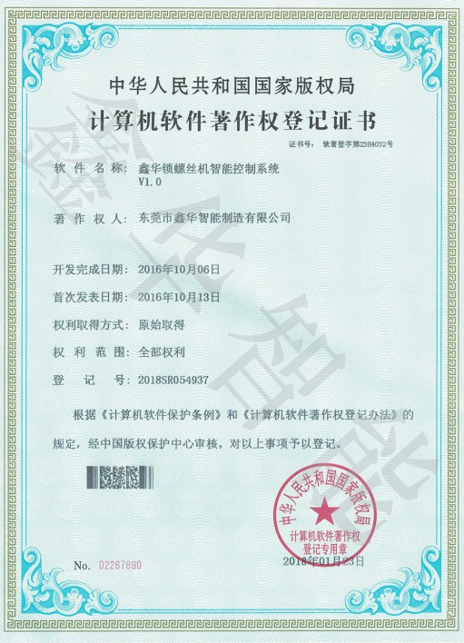 鎖螺絲機控制系統(tǒng)著作權